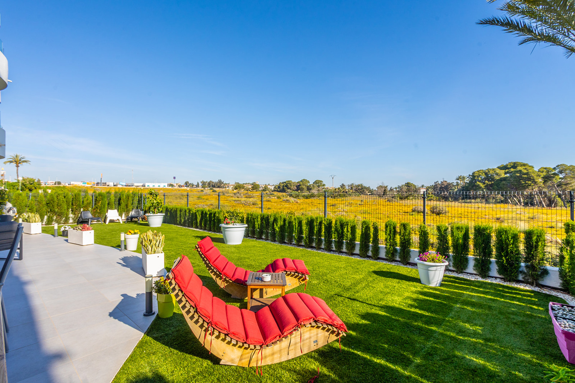 This apartment in the Ocean Dream complex stands out for its functionality and strategic location, just 200 meters from Punta Prima beach. With 84 m² of living space, the property is distributed into two bedrooms and two full bathrooms. Its main attraction is the large private outdoor space: a terrace that connects to a 95 m² garden, maintaining unusual open sea views from the ground floor.