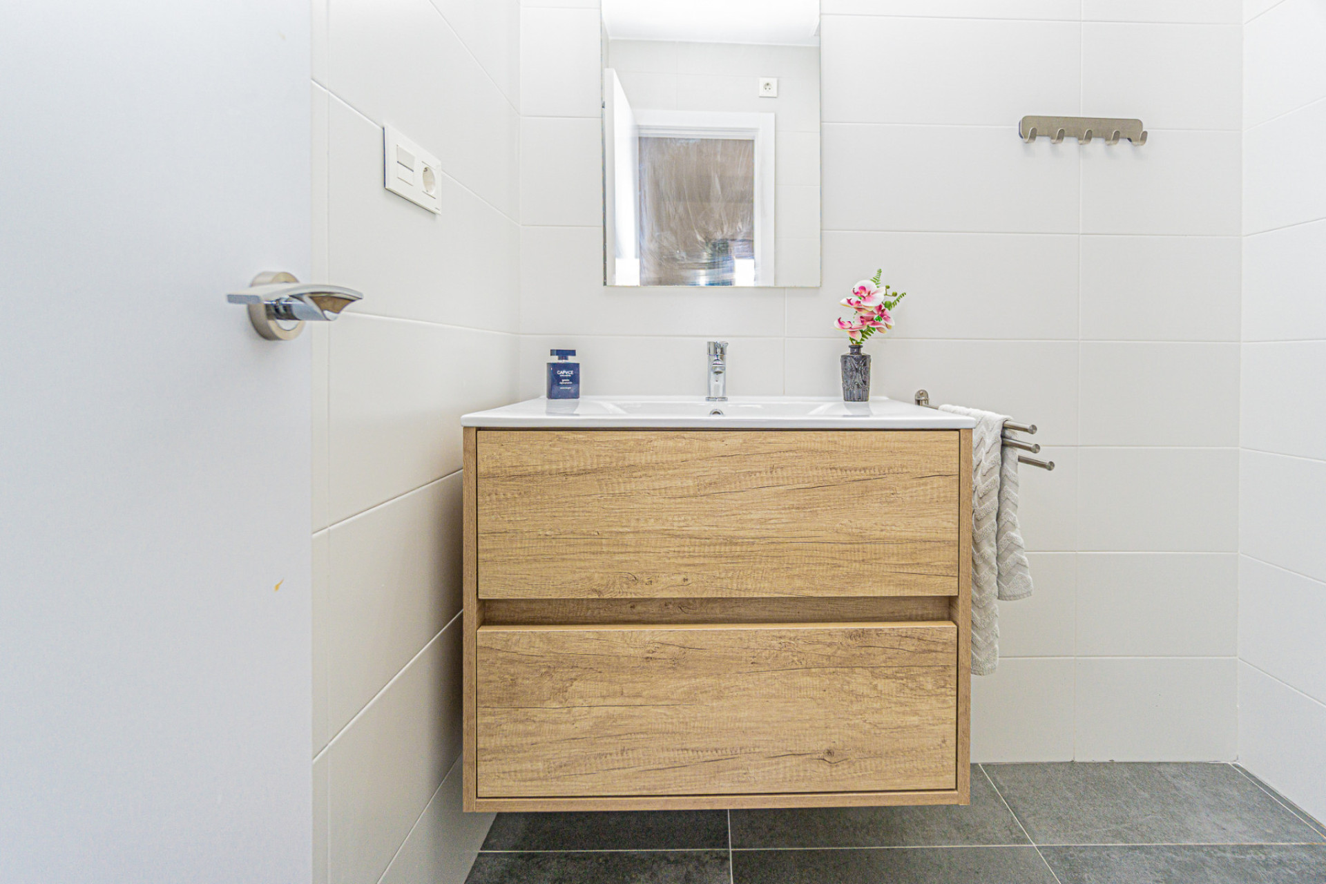 Wij presenteren dit prachtige appartement op de vijfde verdieping van een modern gebouw met lift, gebouwd in 2016, in de gewilde urbanisatie Altos de Campoamor. Het gebouw heeft een ruime en lichte entree die direct een verzorgde indruk maakt. De woning heeft een praktische en comfortabele indeling. Aan de rechterkant bevinden zich twee ruime slaapkamers met prachtig uitzicht op de rambla van Campoamor en op de golfbanen van Las Ramblas en Campoamor – ideaal voor liefhebbers van natuur en golf. Recht vooruit is de eerste badkamer met douche. Links bevindt zich de open keuken met ontbijtbar, die naadloos aansluit op de lichte en ruime woon-eetkamer, smaakvol ingericht met functioneel meubilair. Verder is er een derde slaapkamer met een privébadkamer, wat zorgt voor extra comfort en privacy. Het terras is een van de hoogtepunten van het appartement en biedt een indrukwekkend uitzicht op zee – perfect om te ontspannen, buiten te eten of van de zonsondergang te genieten. Het appartement wordt gemeubileerd verkocht (behalve het bed in de hoofdslaapkamer) en is inclusief huishoudapparatuur. In de woonkamer is er airconditioning aanwezig. De gemeenschap beschikt over uitstekende voorzieningen: een groot gemeenschappelijk zwembad omringd door gras, een tennisbaan, picknickruimte en een tafeltennistafel – perfect om te genieten van het buitenleven. Een uitstekende optie als vaste woning, vakantieappartement of vastgoedinvestering. Wacht niet langer – neem vandaag nog contact met ons op voor een bezichtiging!
